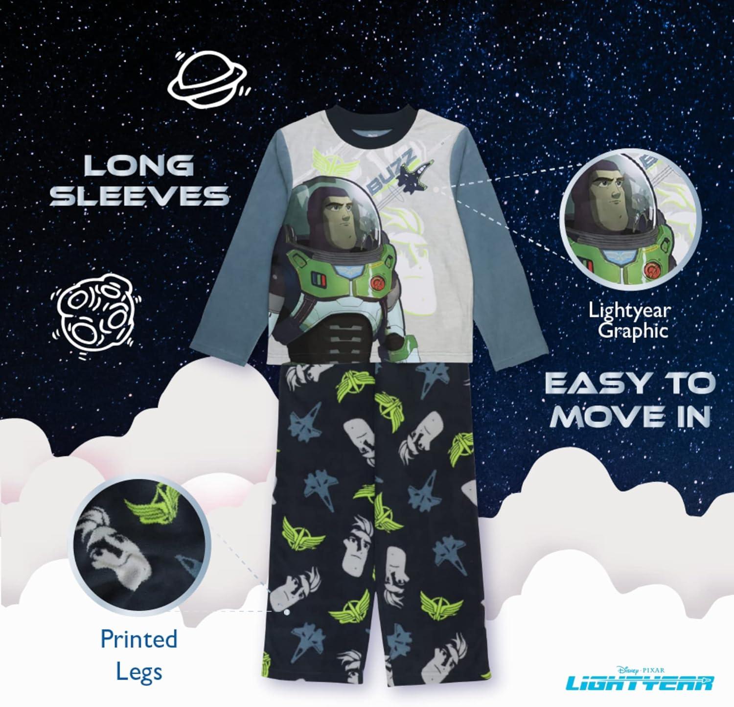 Disney Boys’ 2-Piece Loose-fit Pajama Set, Matching Shirts & Pants, Soft & Cute for Kids(Buzz Space)