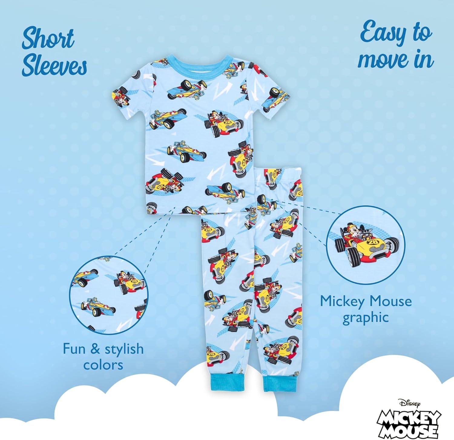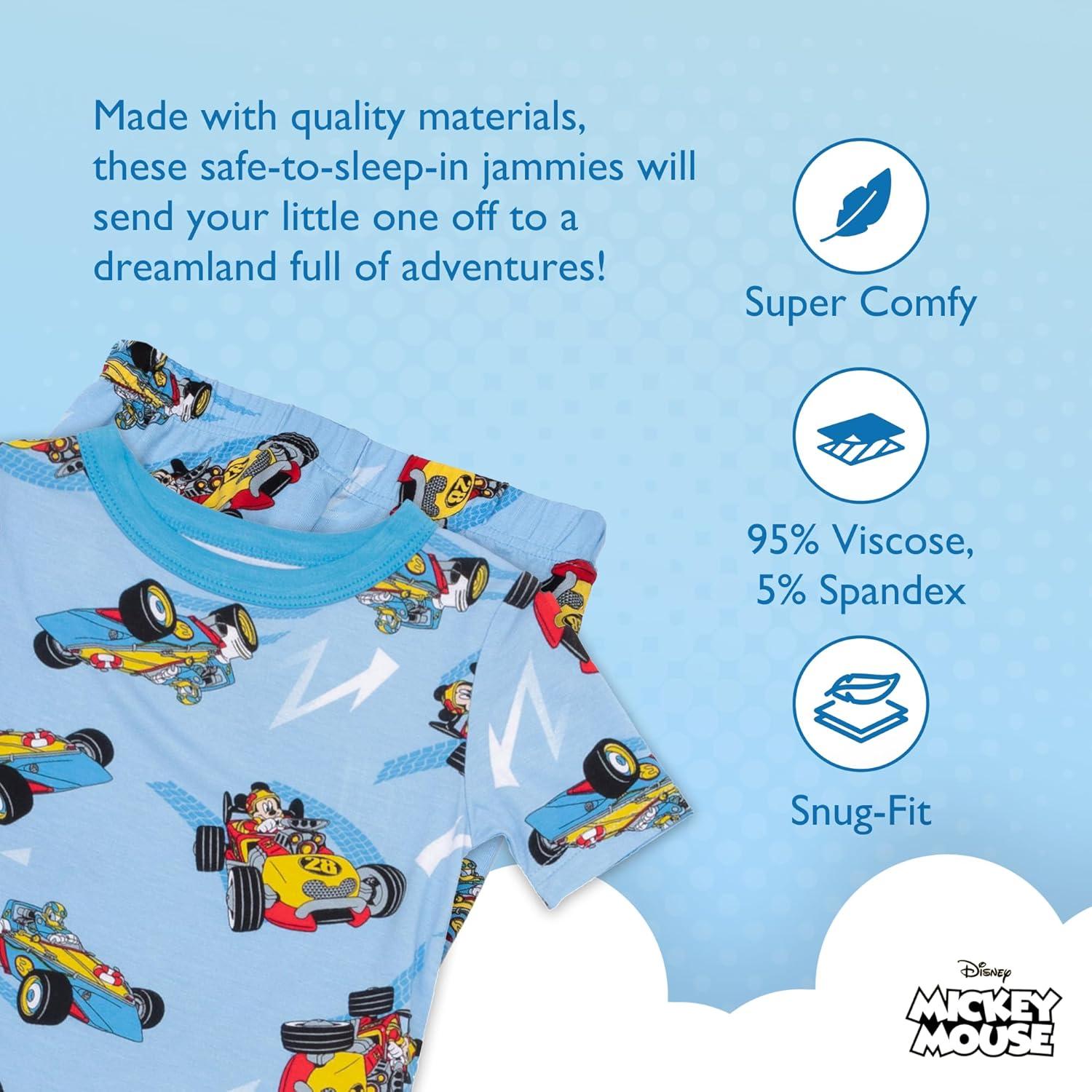 Disney boys 2-piece Snug-fit Viscose Pajama Set, Soft & Cute for Kids(Racing Cars)