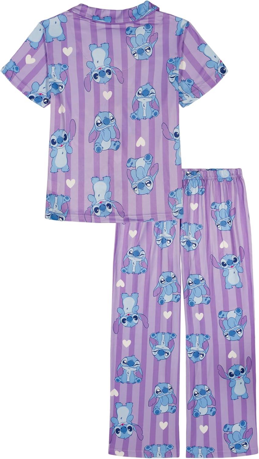 Disney Girls' 2-piece Loose-fit Button Down Matching Pajama Set, Soft & Cute for Kids(Sweet Stitch)