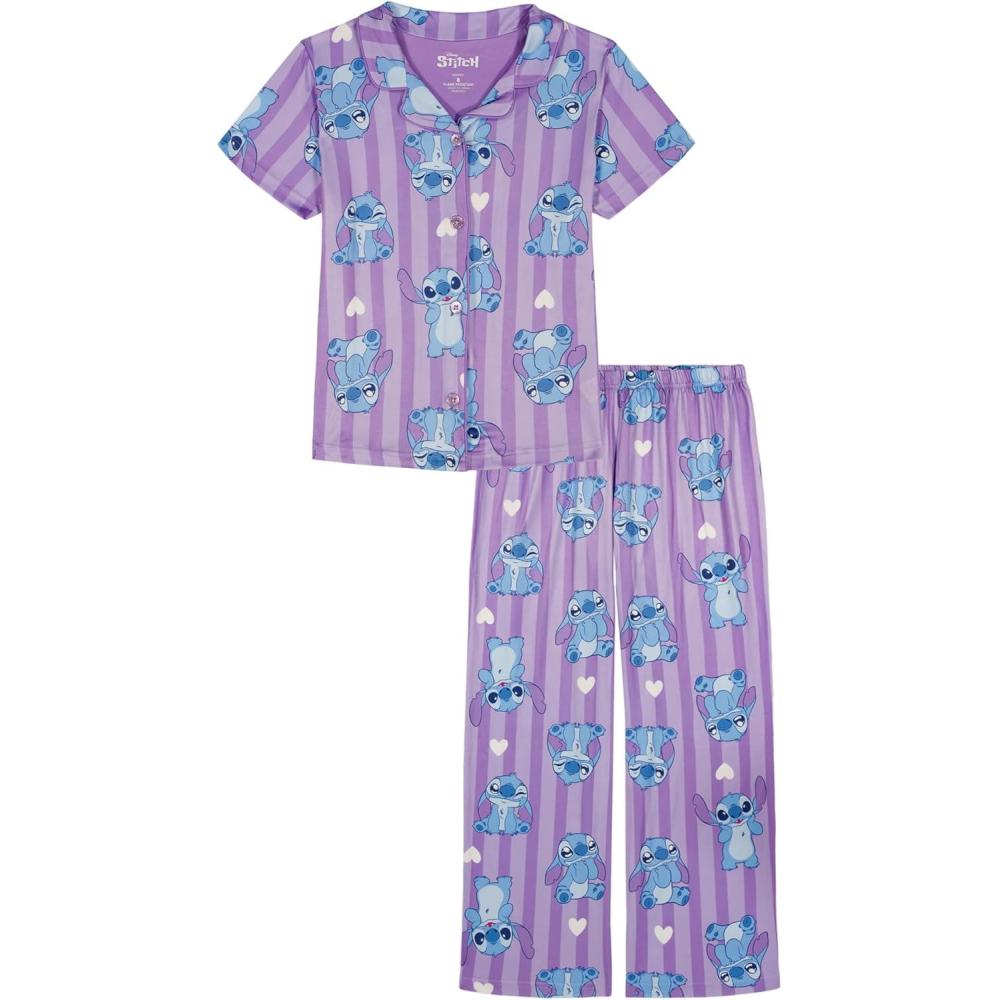 imageDisney Girls 2piece Loosefit Button Down Matching Pajama Set Soft amp Cute for KidsSweet Stitch