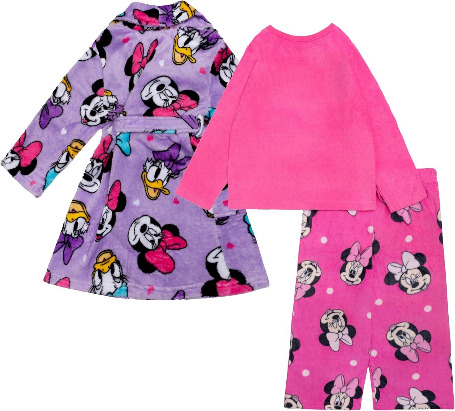 Disney Girls' 3-piece Bathrobe & Loose-fit Pajama Set, Soft & Cute for Kids(Minnie Loves)