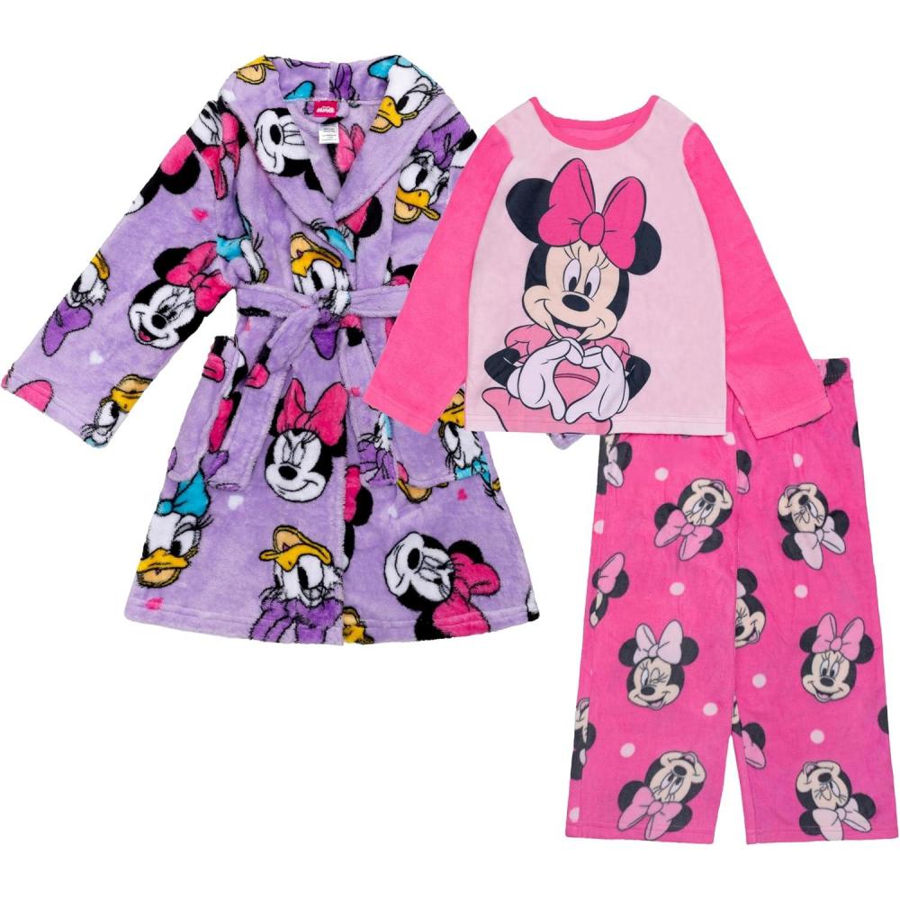 imageDisney Girls 3piece Bathrobe amp Loosefit Pajama Set Soft amp Cute for KidsMinnie Loves