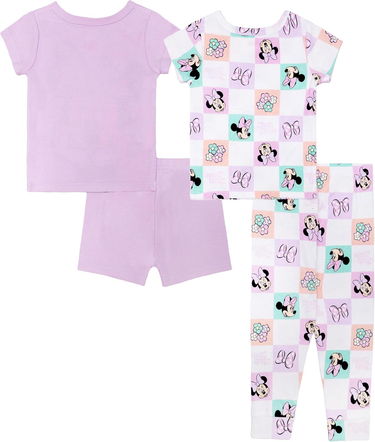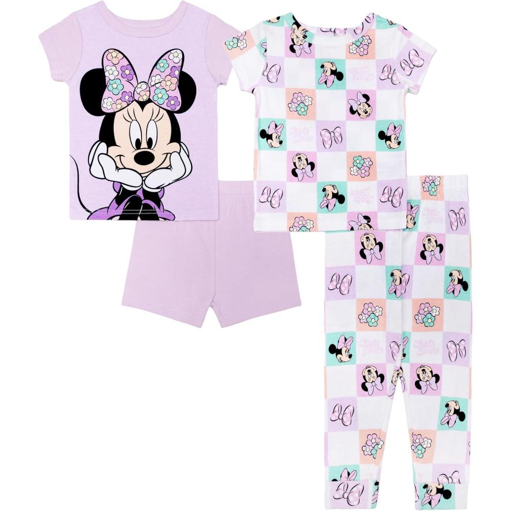 imageDisney Girls 4Piece Snugfit Cotton Matching Pajama Set ShortSleeve Soft amp Cute for KidsMinnie Flower Checker
