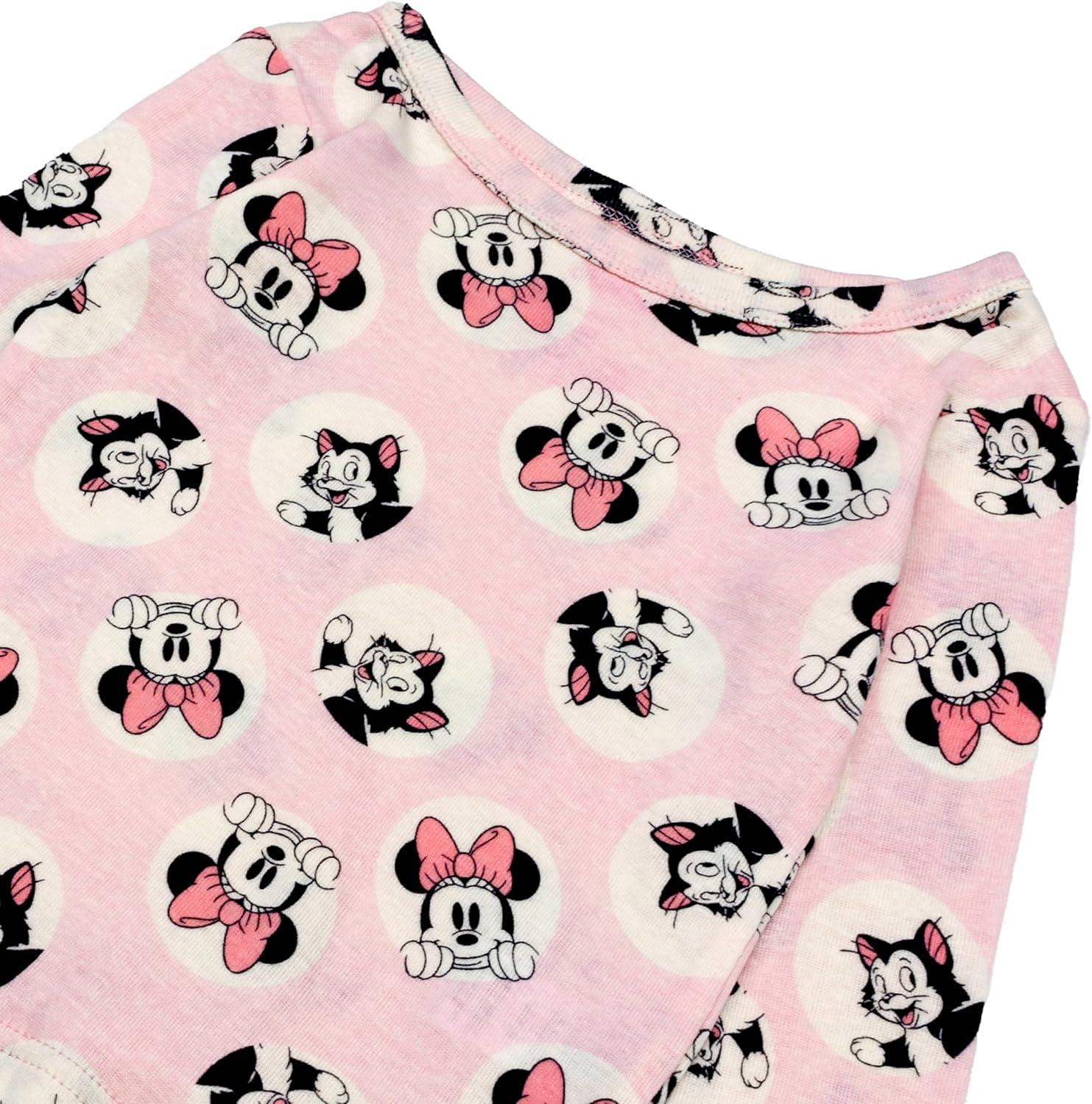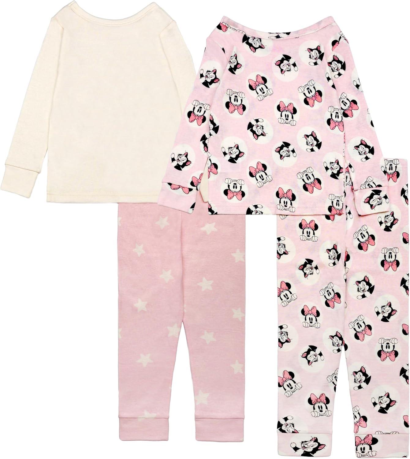 Disney Girls’ 4-Piece Snug-fit Cotton Matching Pajama Set, Short-Sleeve, Soft & Cute for Kids(Minnie Star)