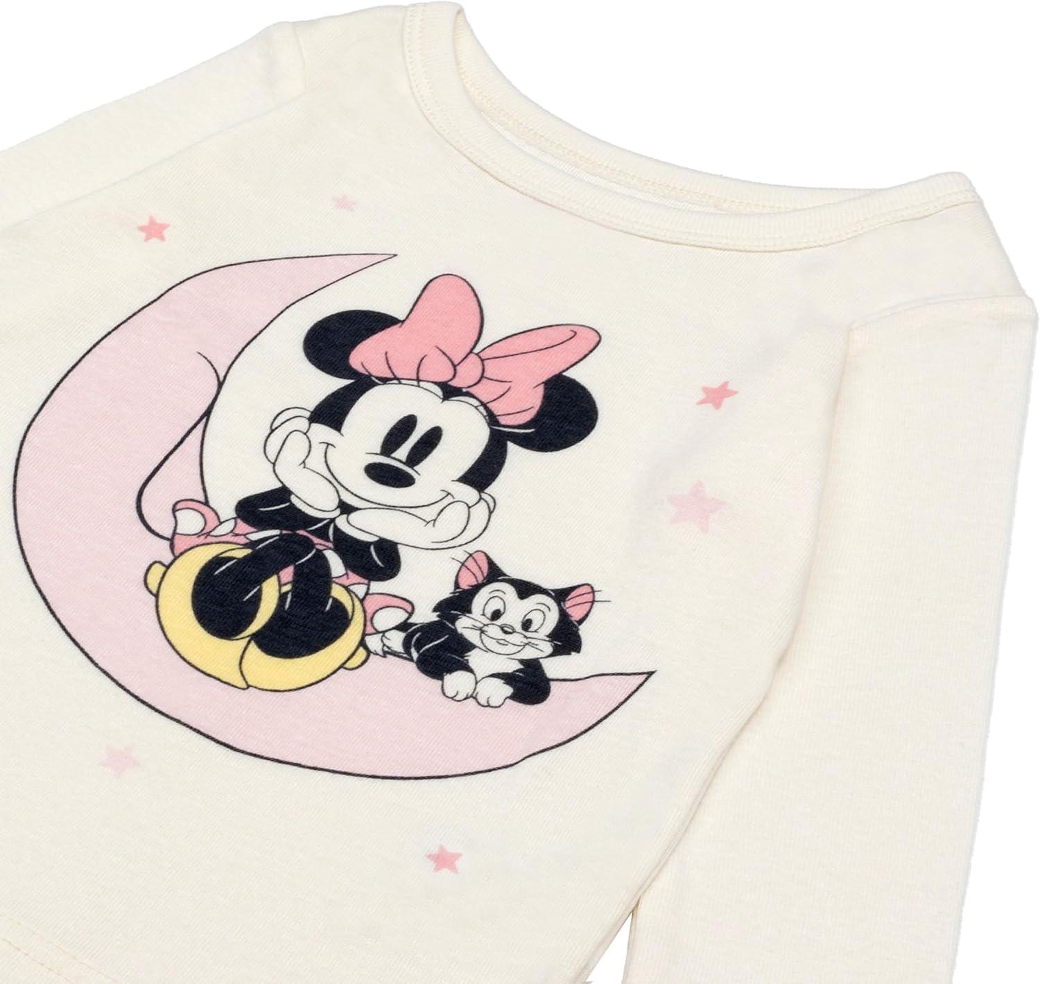imageDisney Girls 4Piece Snugfit Cotton Matching Pajama Set ShortSleeve Soft amp Cute for KidsMinnie Star