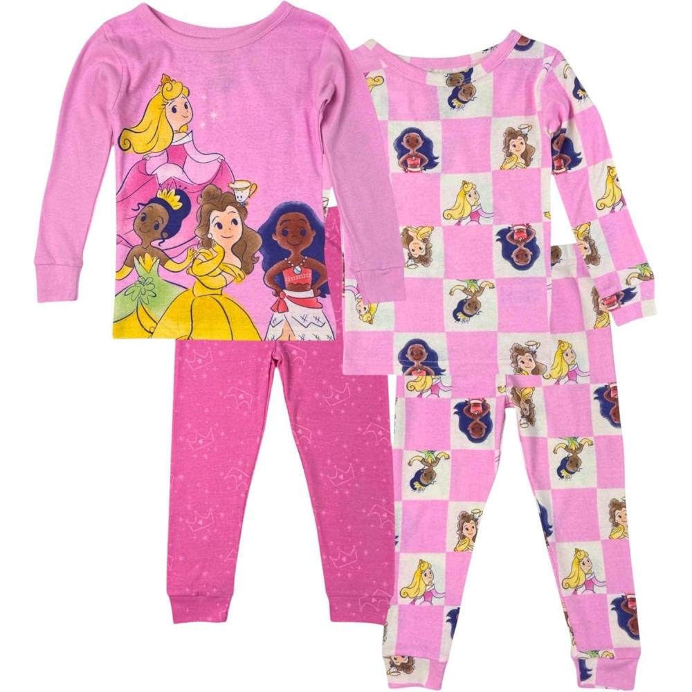 Disney girls 4-piece Snug-fit Cotton Pajama Set, Soft & Cute for Kids(Fairytale Pink)