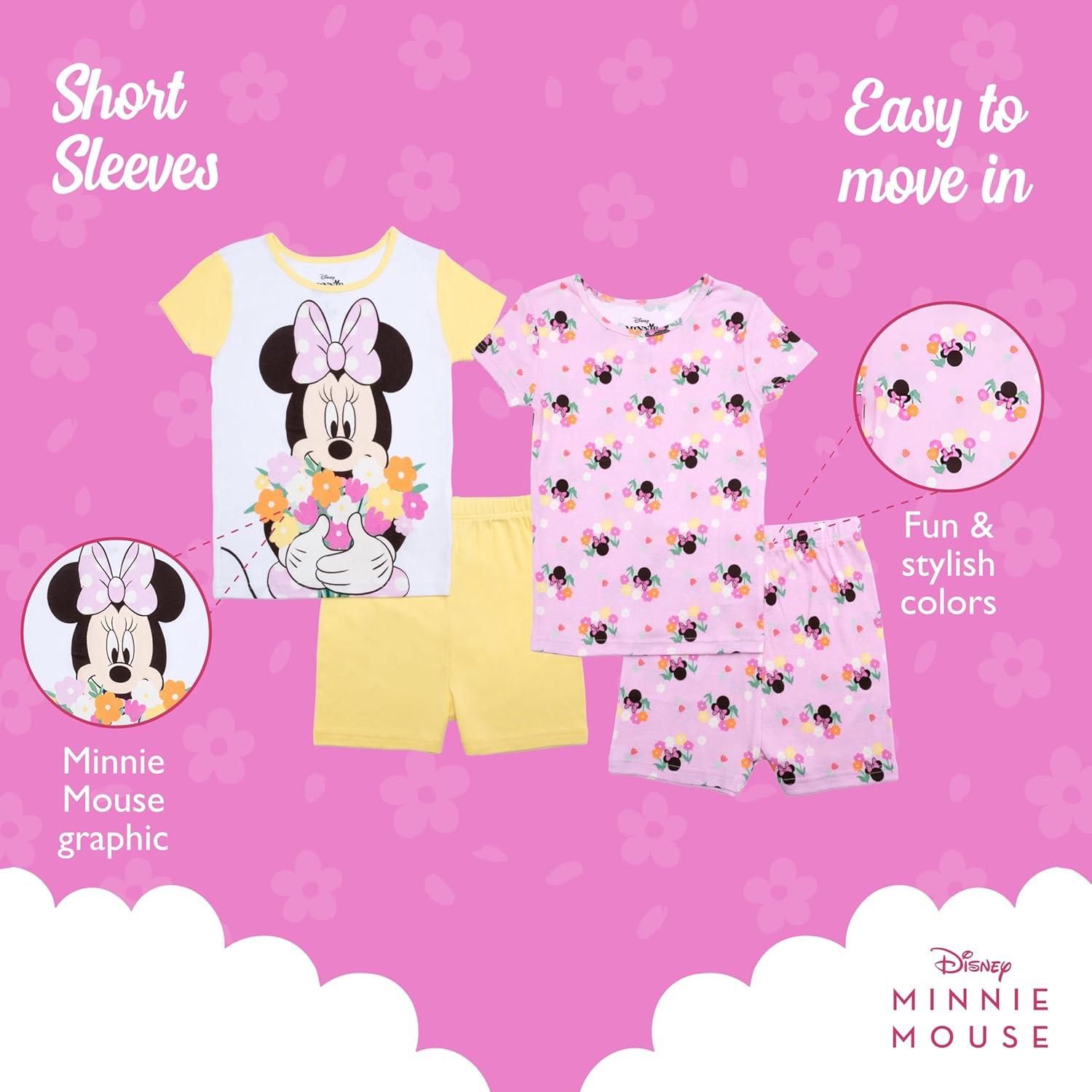 Disney Girls' 4-Piece Snug-fit Cotton Pajama Set, Soft & Cute for Kids(Minnie Garden)