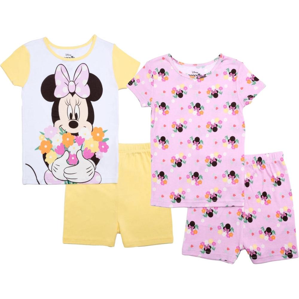 Disney Girls’ 4-Piece Snug-fit Cotton Pajama Set, Soft & Cute for Kids(Minnie Garden)