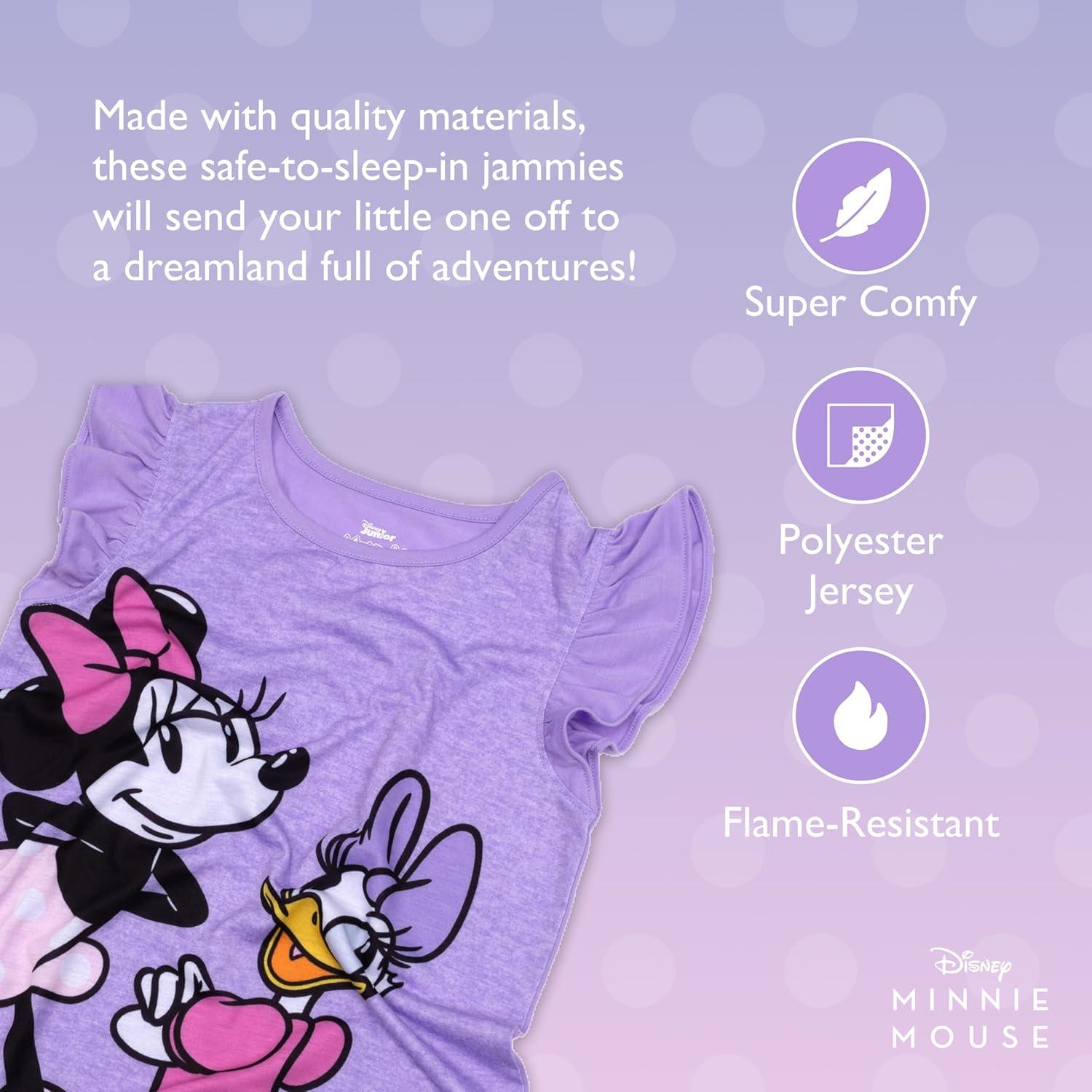 Disney Girls’ Dress Nightgown, Short-Sleeve Fantasy Gown, Soft & Cute Pajamas for Kids(Minnie and Daisy)