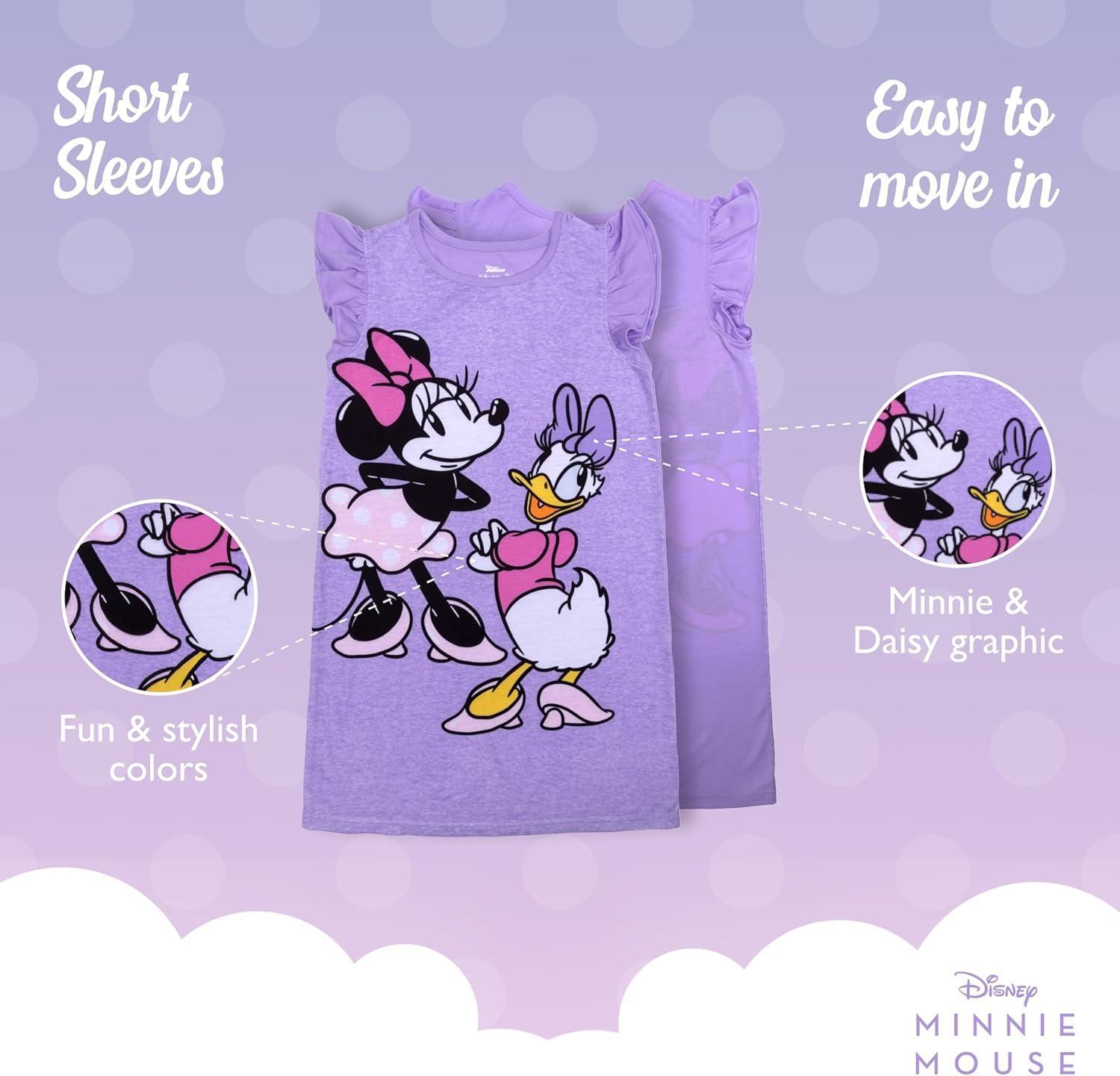 Disney Girls' Dress Nightgown, Short-Sleeve Fantasy Gown, Soft & Cute Pajamas for Kids(Minnie and Daisy)