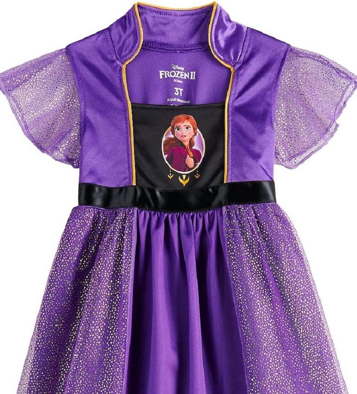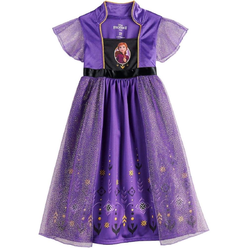 Disney Girls’ Princess Dress Nightgown, Fantasy Gown, Soft & Cute Pajamas for Kids(Anna – Royal Purple)