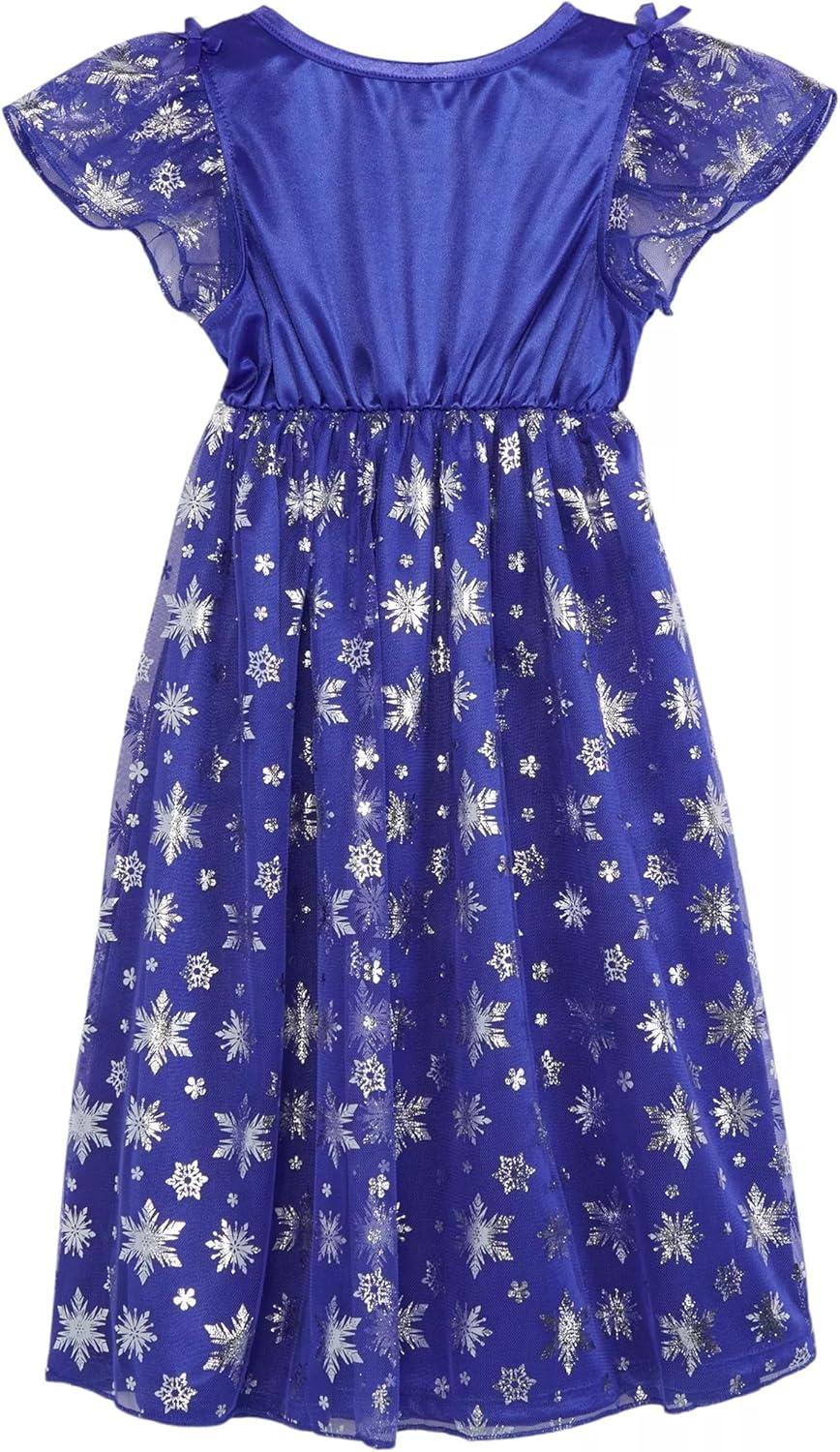 Disney Girls’ Princess Dress Nightgown, Fantasy Gown, Soft & Cute Pajamas for Kids(Blue)