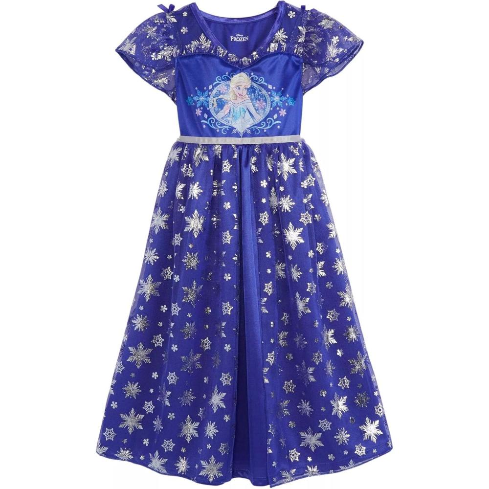 Disney Girls’ Princess Dress Nightgown, Fantasy Gown, Soft & Cute Pajamas for Kids(Fantasy Elsa)