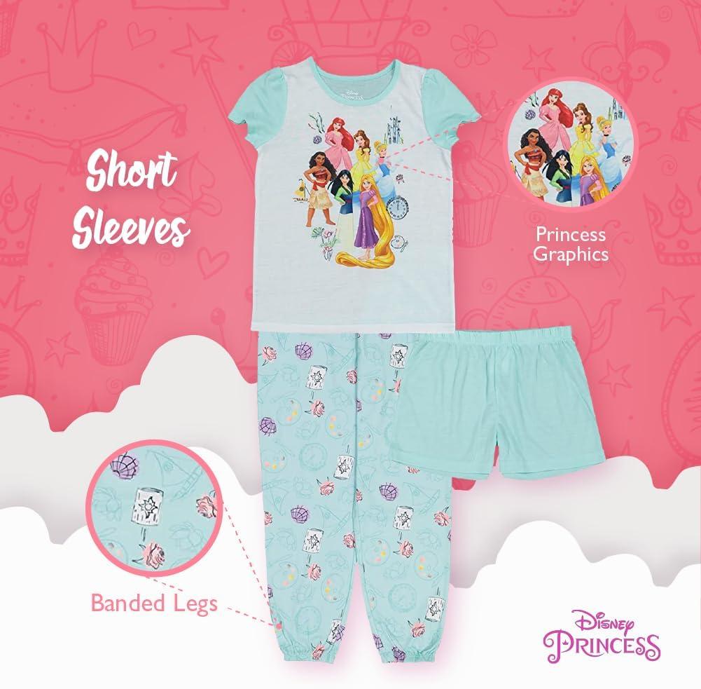 Disney Girls’ 4-Piece Snug-fit Cotton Pajama Set, Soft & Cute for Kids(Frozen Sisters)