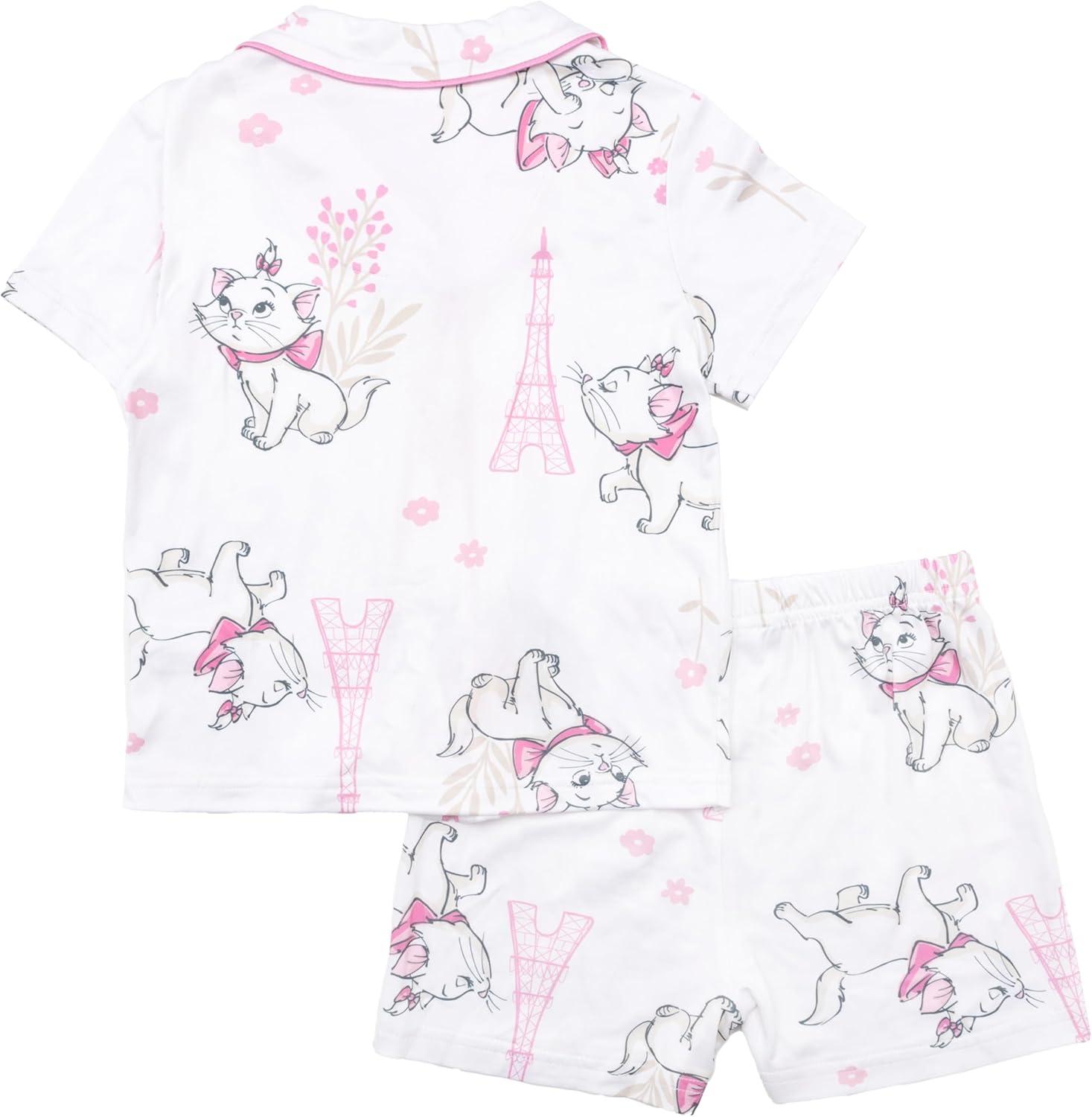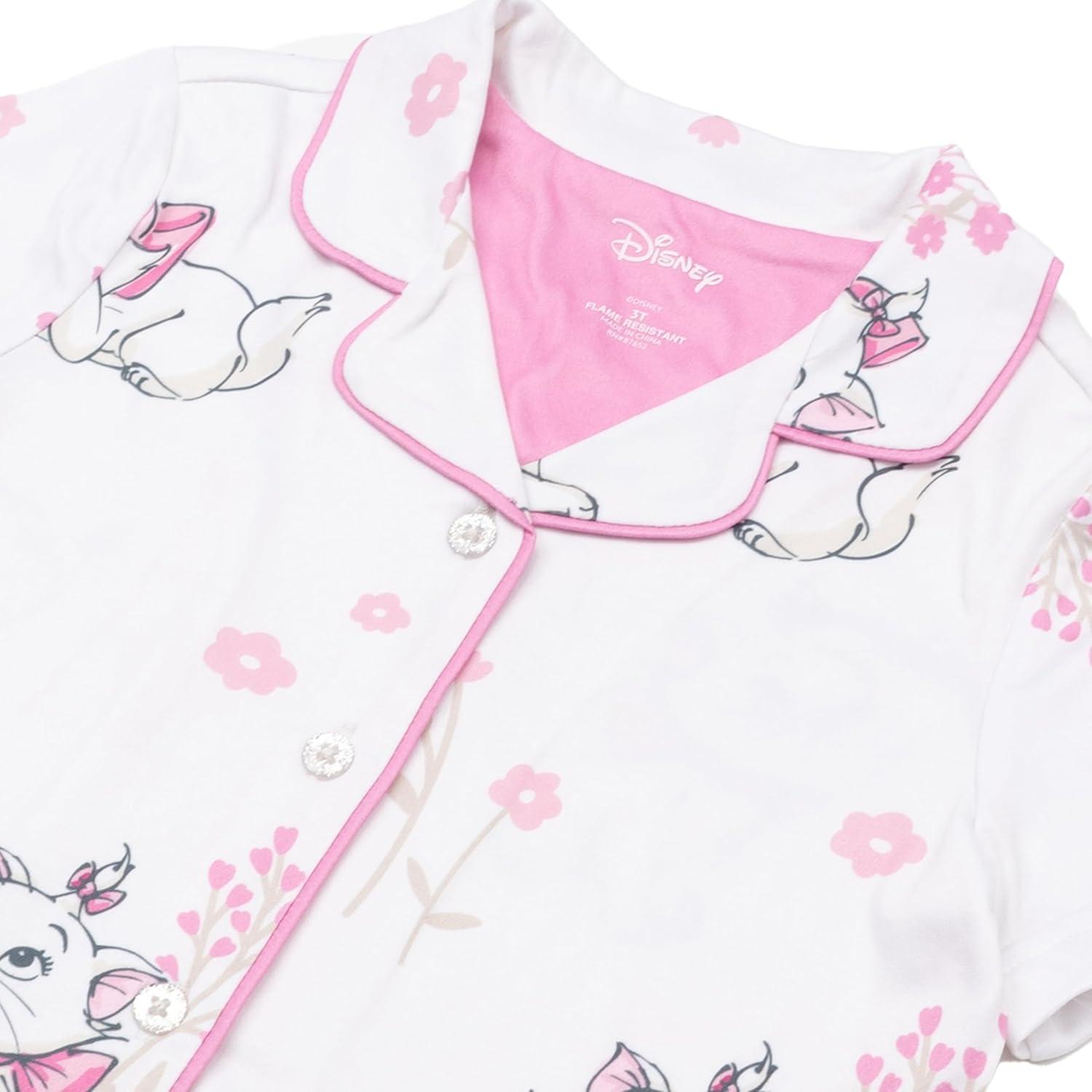 Disney Minnie Mouse Girls' 2-Piece Loose-fit Button Down Matching Pajama Set, Soft & Cute for Kids(Adorable Marie)