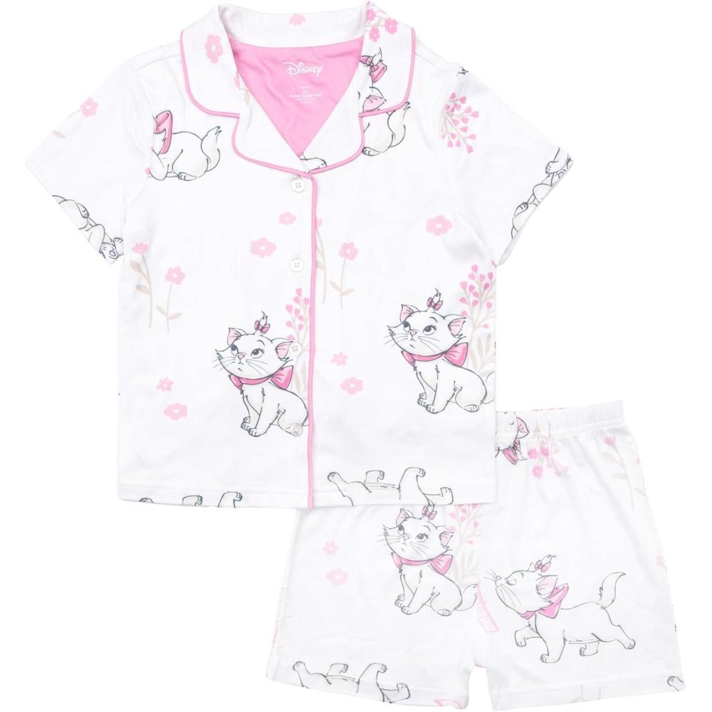 imageDisney Minnie Mouse Girls 2Piece Loosefit Button Down Matching Pajama Set Soft amp Cute for KidsAdorable Marie