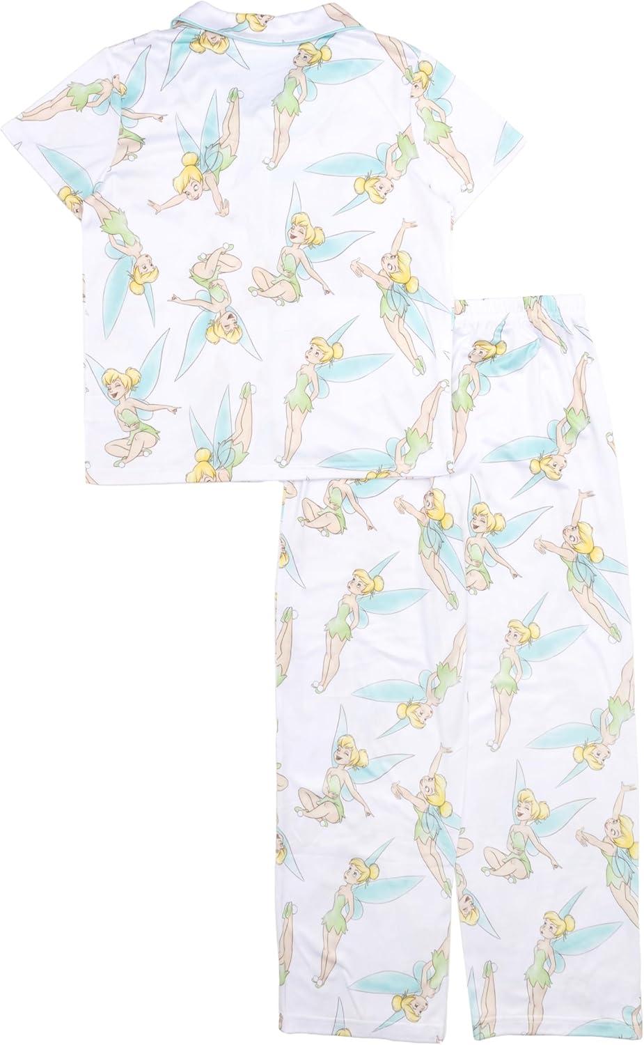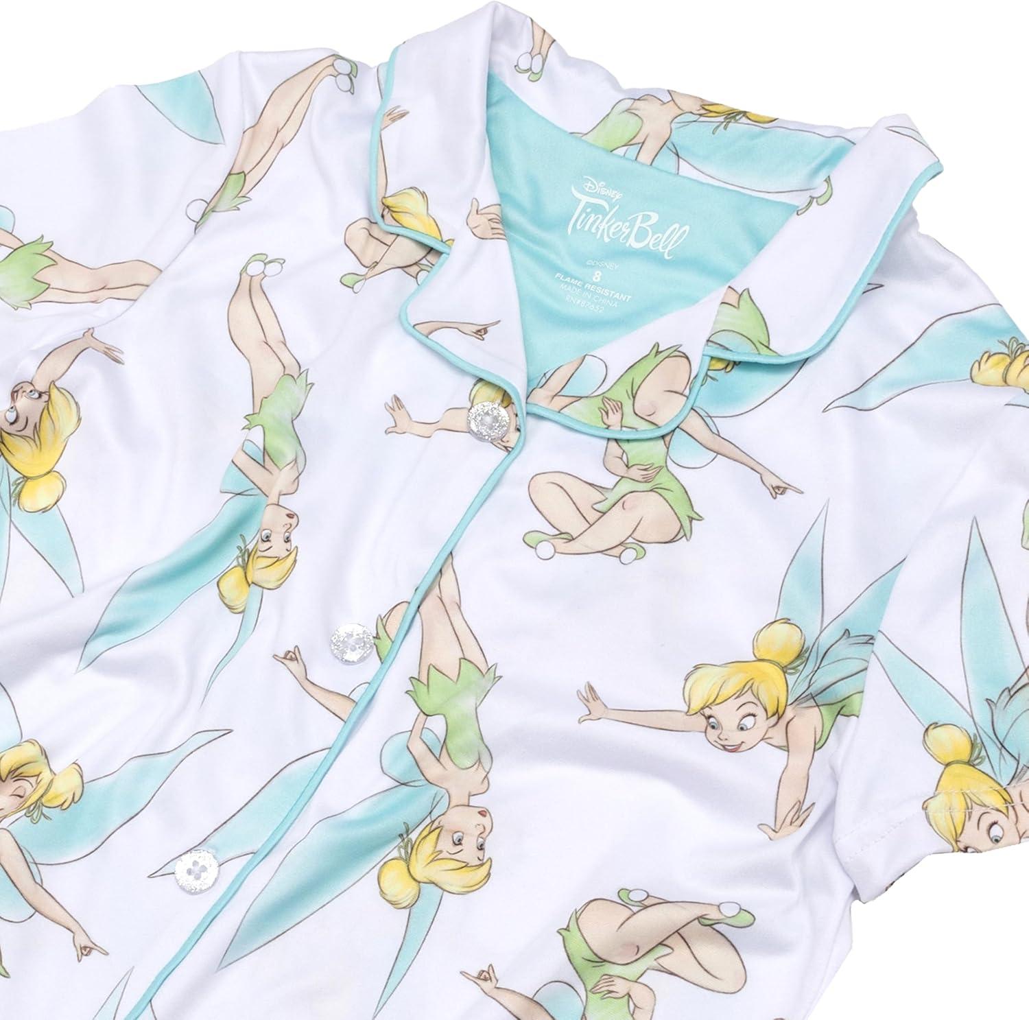 Disney Minnie Mouse Girls’ 2-Piece Loose-fit Button Down Matching Pajama Set, Soft & Cute for Kids(Disney Princess)