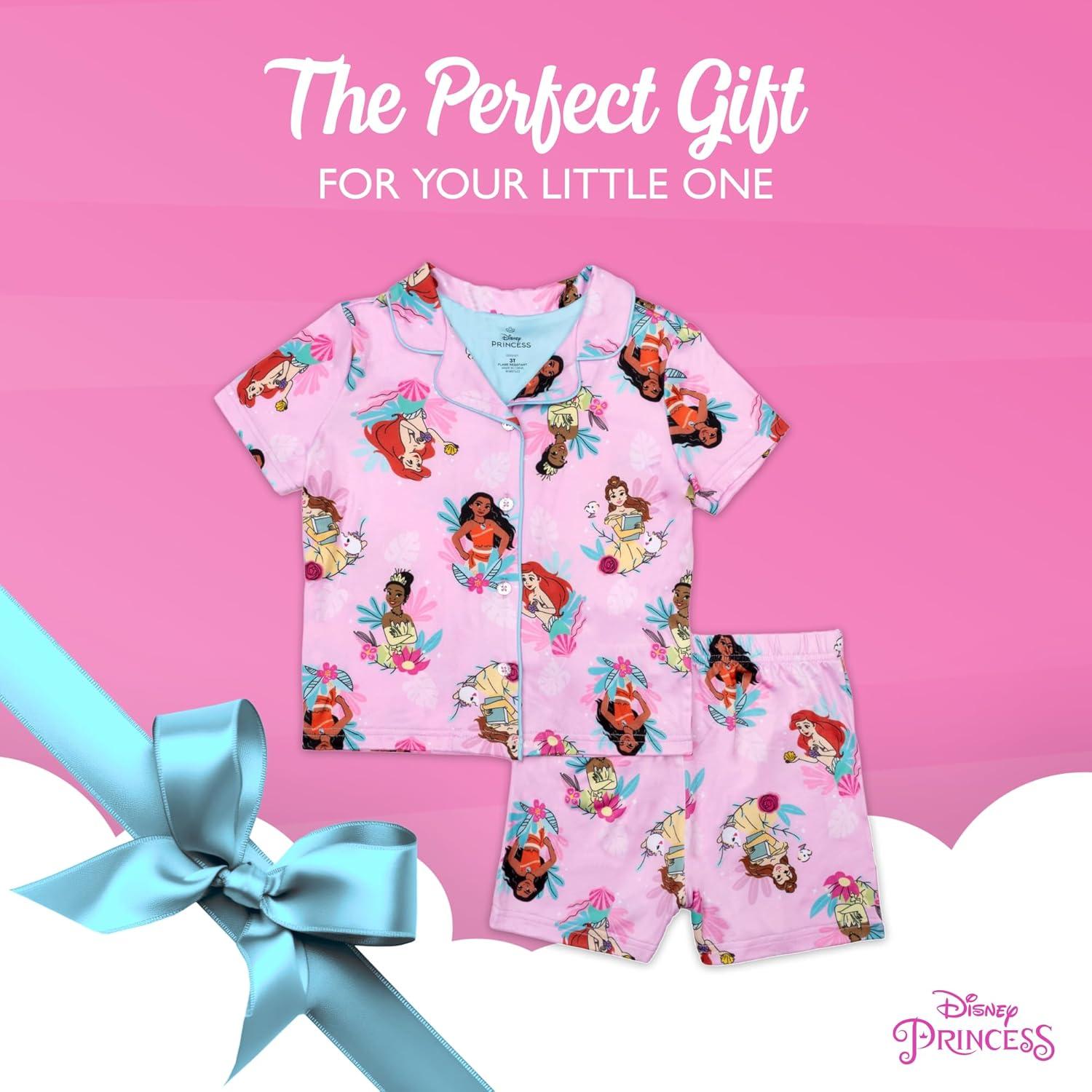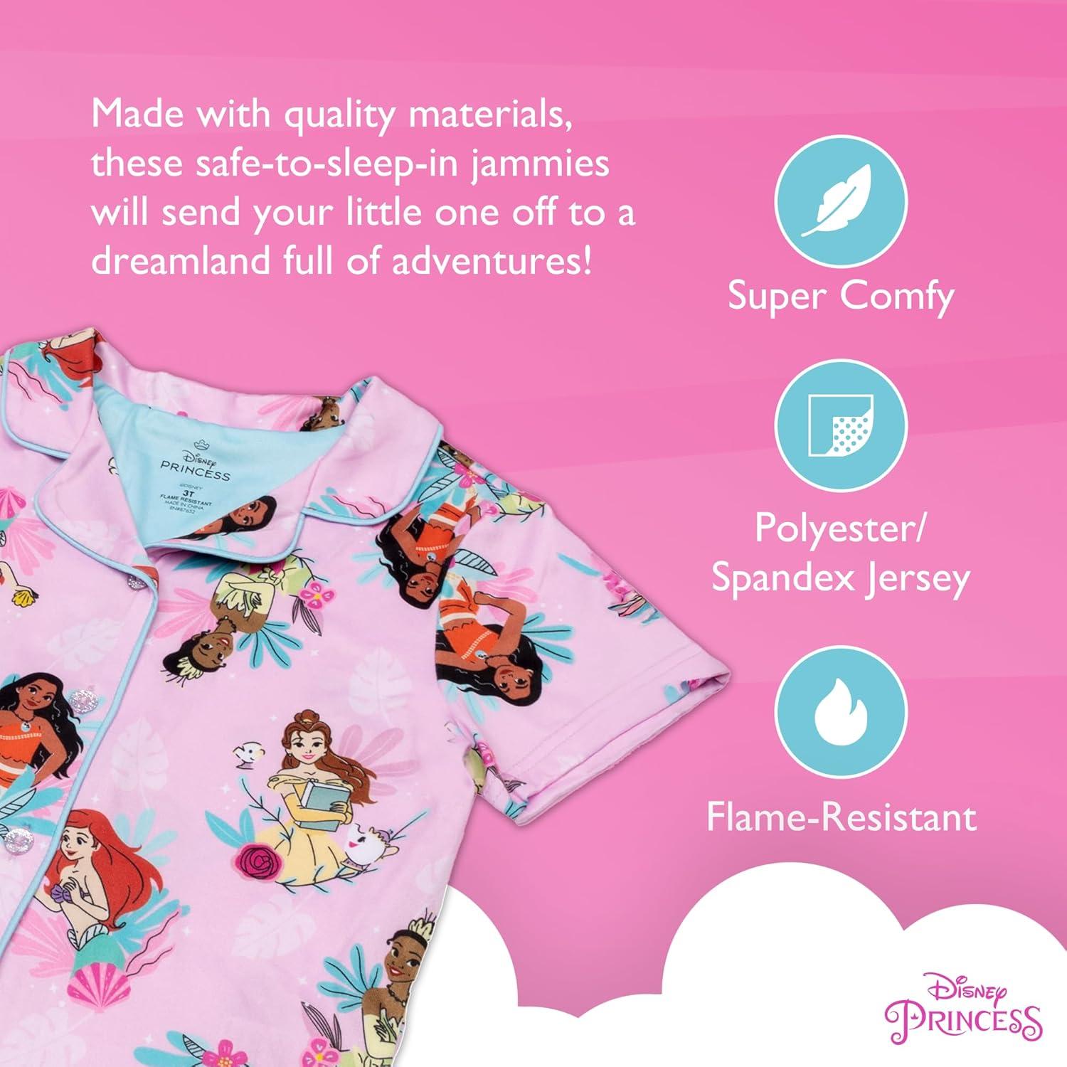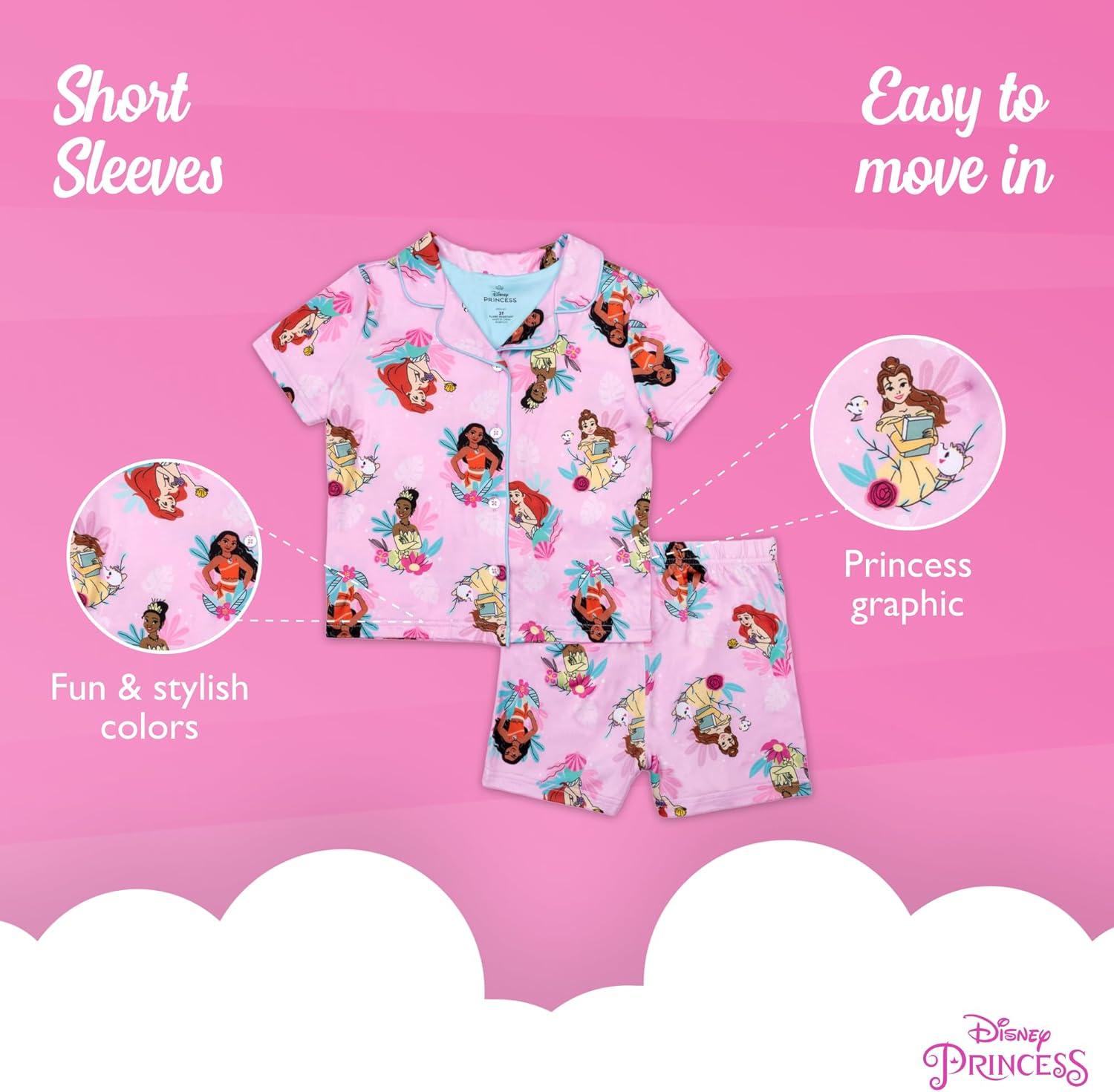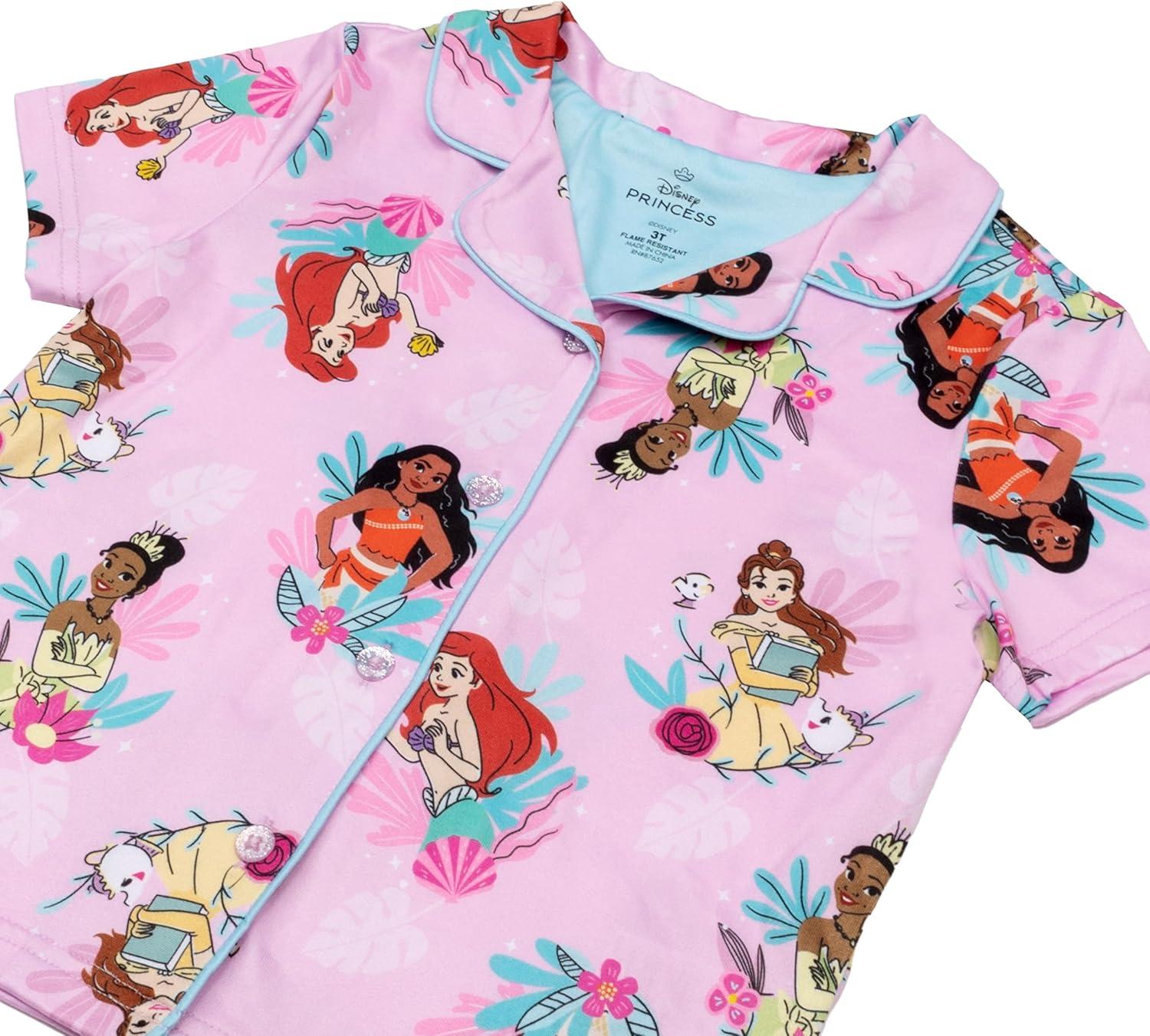 Disney Minnie Mouse Girls' 2-Piece Loose-fit Button Down Matching Pajama Set, Soft & Cute for Kids(Royal Vacation)