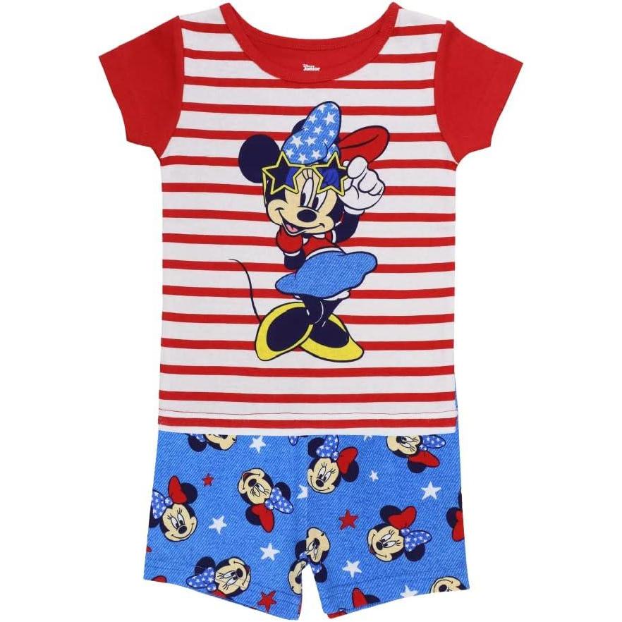 Disney Unisex Kids' 2-piece Snug-fit Cotton Holiday Matching Pajama Set, Soft & Cute for Kids(Minnie America)