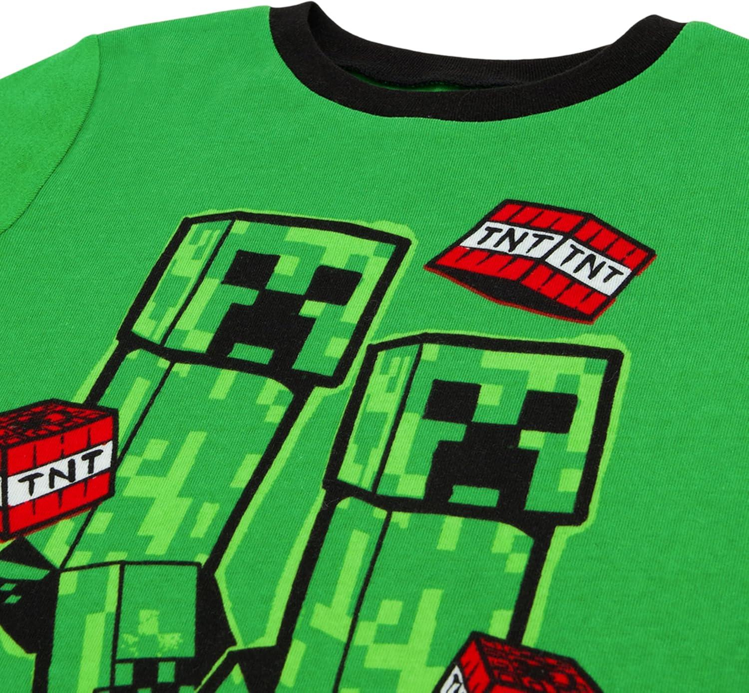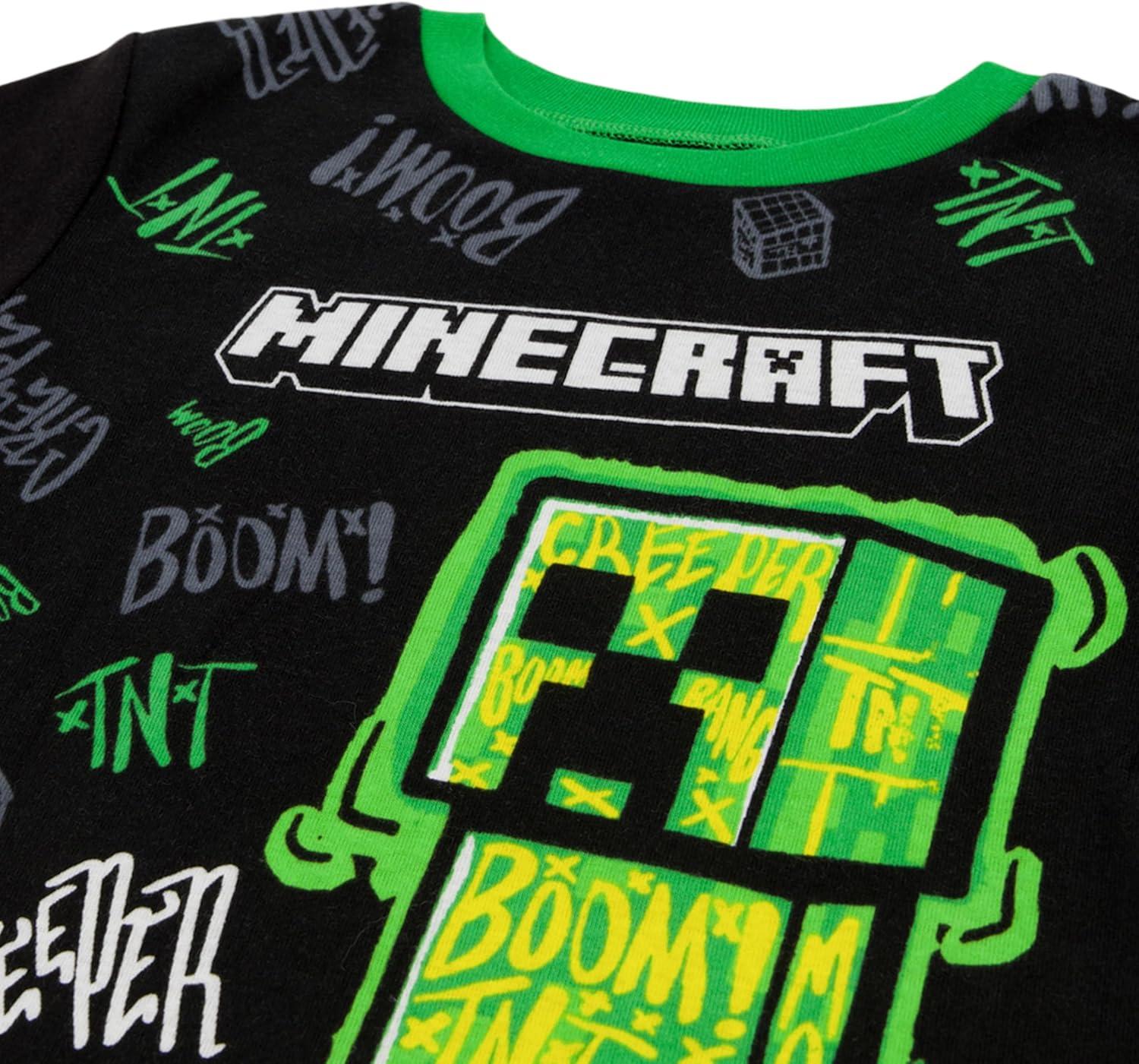 Minecraft Boys' 6-Piece Cotton Pajama Set, Matching Snug-fit Shirt & Pants, Soft & Cute for Kids(Wild Style Minecraft)