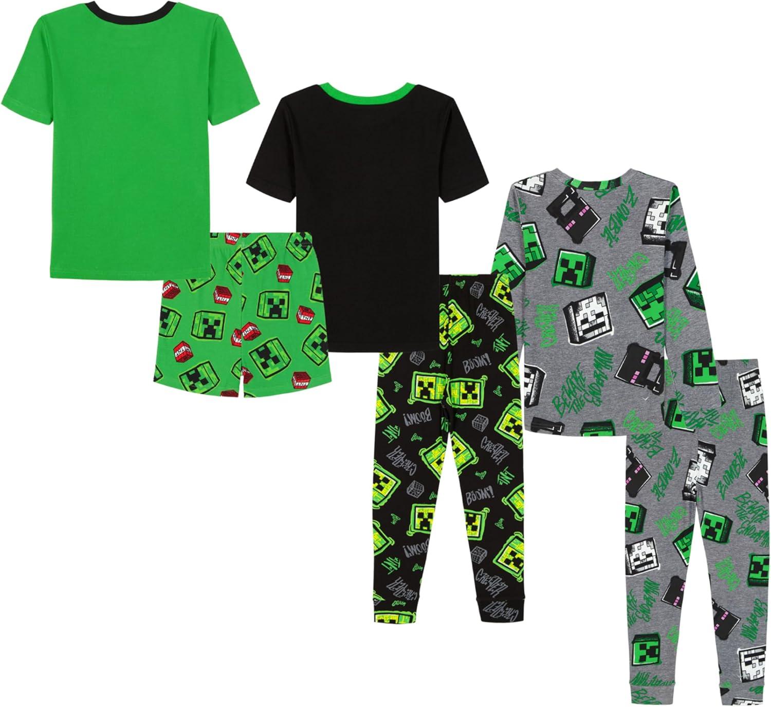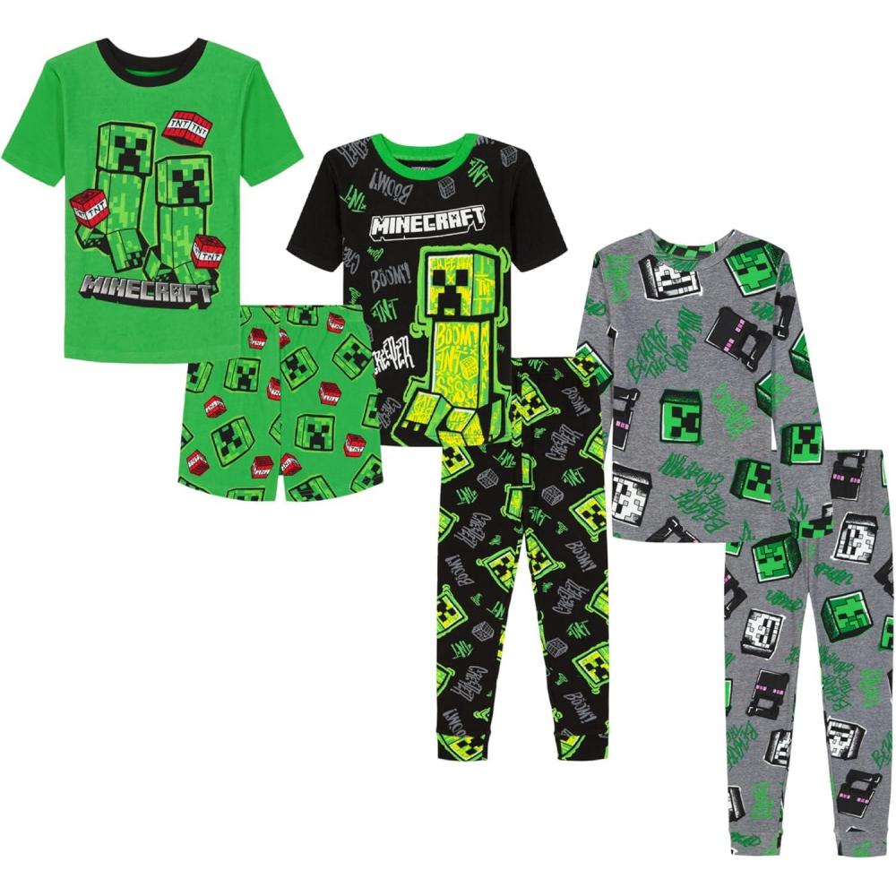 Minecraft Boys’ 6-Piece Cotton Pajama Set, Matching Snug-fit Shirt & Pants, Soft & Cute for Kids(Wild Style Minecraft)