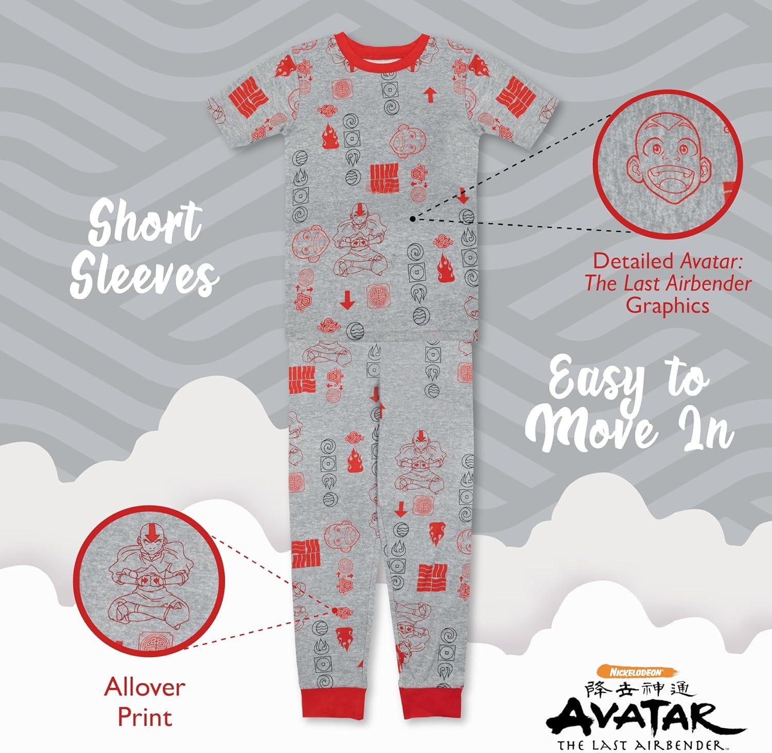 Nickelodeon Boys' 4-piece Snug-fit Cotton Short-Sleeve Matching Pajama Set, Soft & Cute for Kids(Airbender)